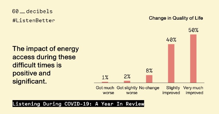 While off-grid energy customers are faring worse than before the pandemic, our research showed just how much energy access is valued, and the positive impact it has on quality of life, opportunities to earn an income, and safety and security. Nevertheless, nearly one third of customers are struggling to make repayments for energy products or services purchased. Finding ways to financially support these customers and companies during this time is essential.