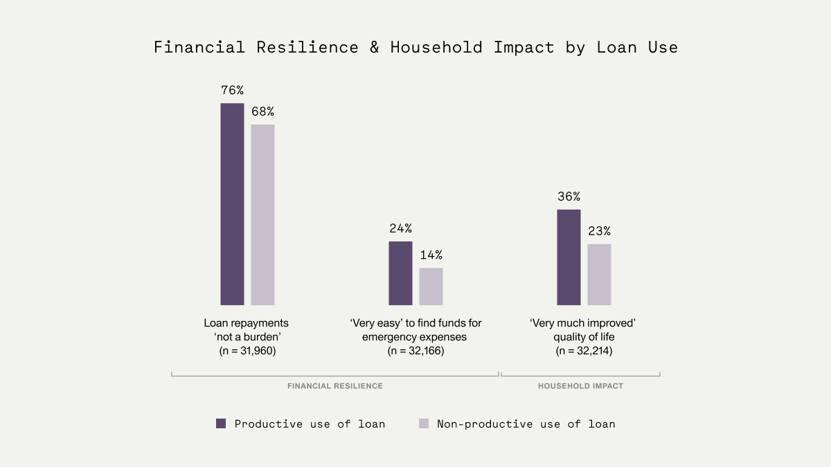 4. Clients who use their loan for business (productive) purposes report better outcomes in financial resilience and in their households.